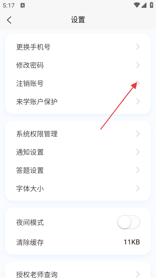 3、在设置界面中,点击【注销账号】选项,可进入注销账号的验证界面。