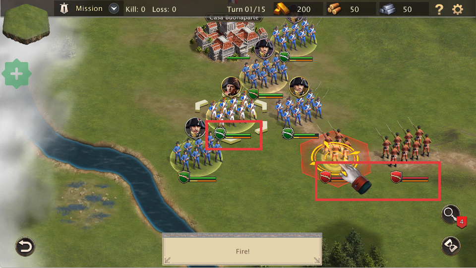 4、指挥部队,利用火力优势,注意双方血条,消灭敌人。