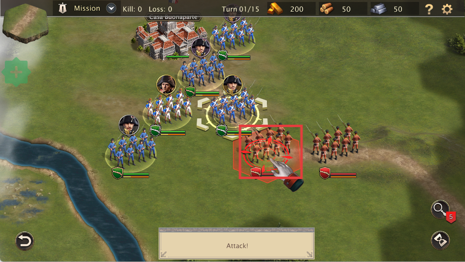3、发起攻击,消灭敌方部队,推进战斗进程,完成任务目标。
