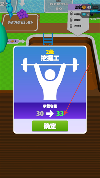 2、升级挖掘工,可提升承载容量,增加单次矿石承载量,提升资源获取效率。