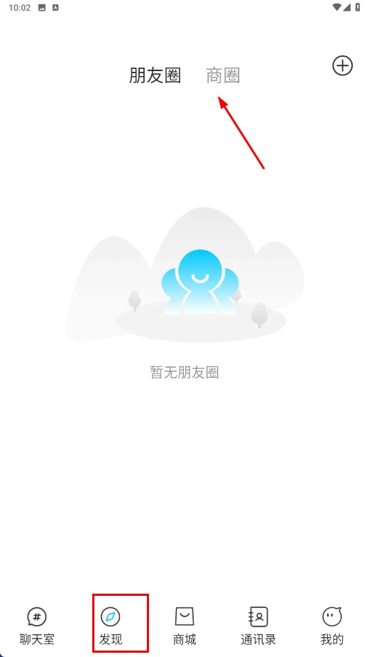 1、点击底部【发现-功能按钮】,进入发现页面后点击【商圈-标签】。