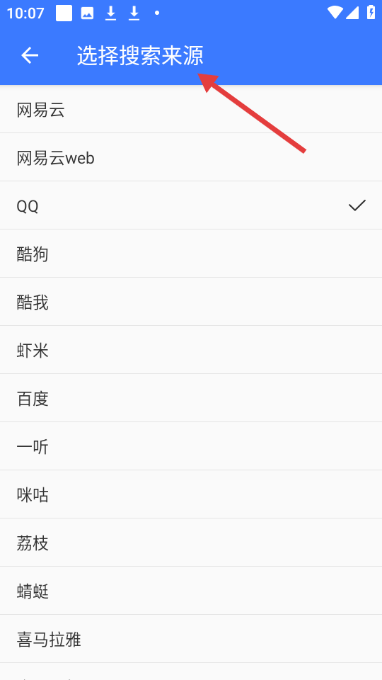 4、在【选择搜索来源】界面可选择不同的音乐搜索来源。