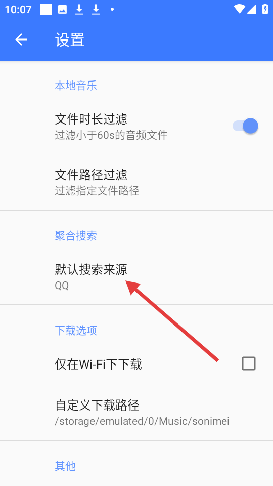 3、在设置界面点击【默认搜索来源】可进入选择搜索来源界面。