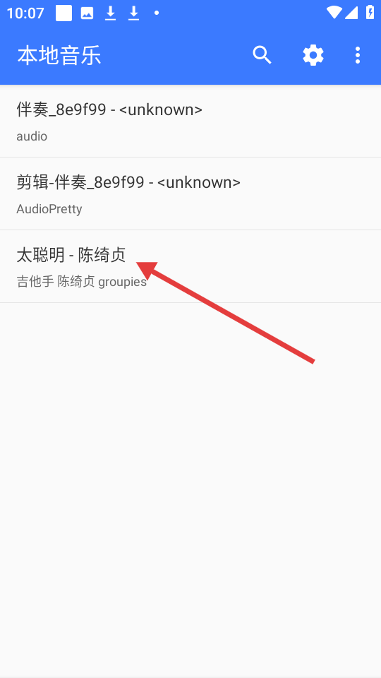 2、在本地音乐列表中点击【太聪明-陈绮贞】可进行播放等操作。