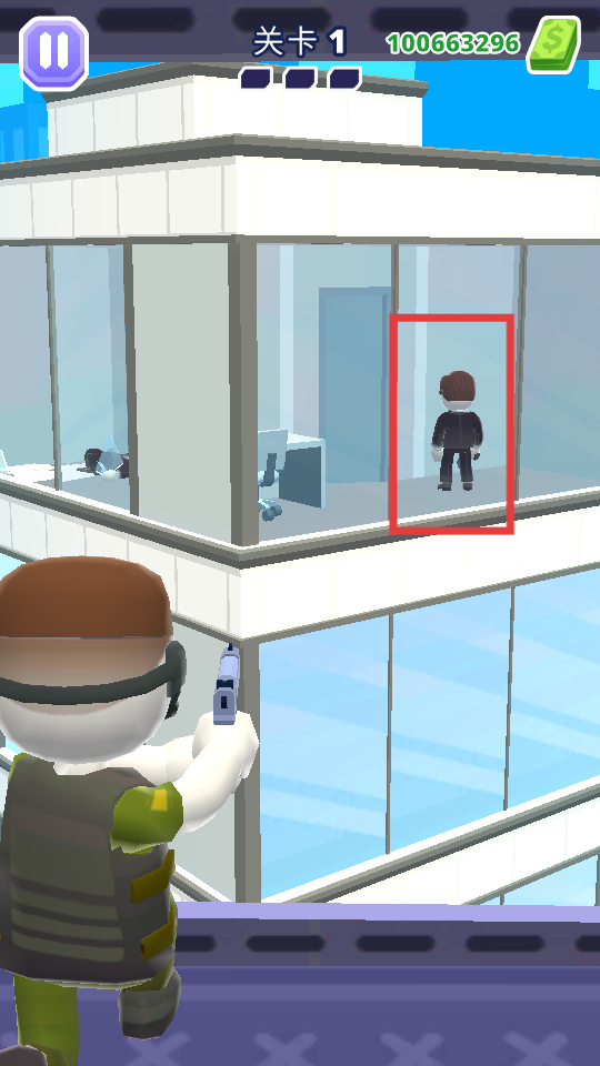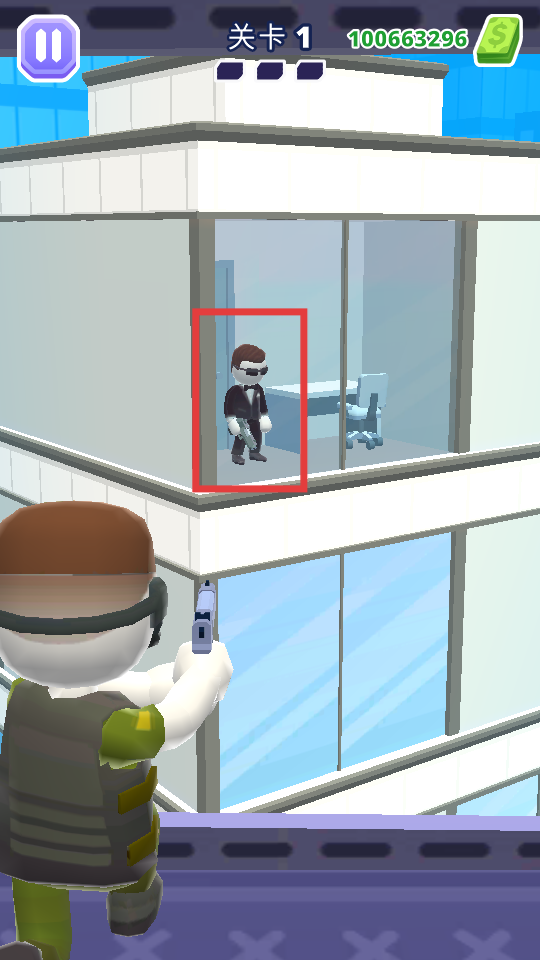 2、瞄准建筑内的敌人,射击消灭目标,注意敌人位置。