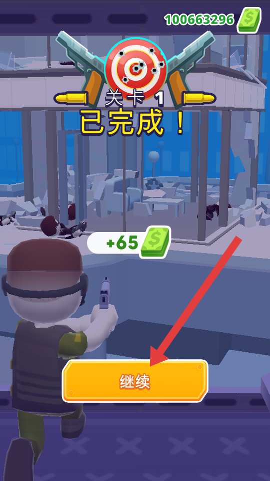 4、关卡完成后,获取金币奖励,点击【继续】挑战后续关卡。