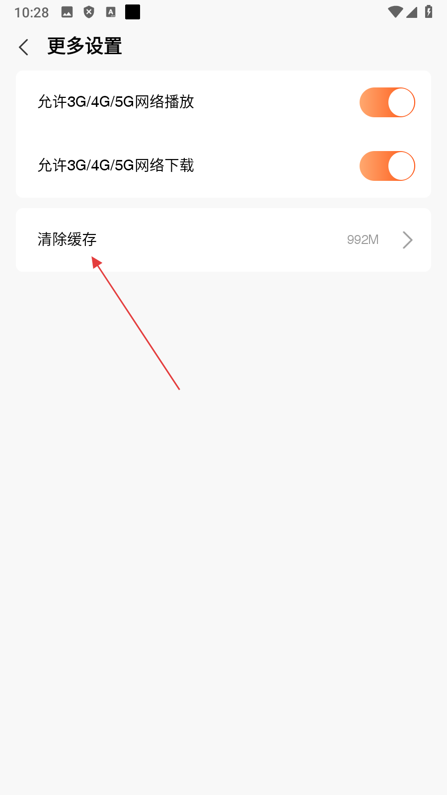 3、在更多设置页面,点击【清除缓存】,弹出确认清除缓存的弹窗。