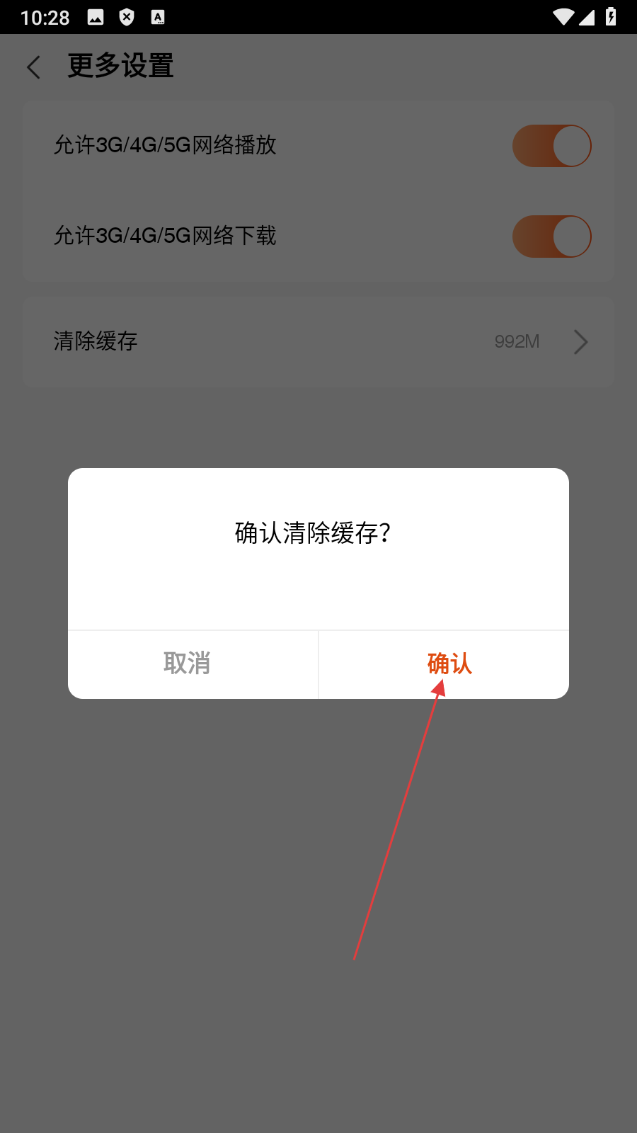 4、在弹窗中,点击【确认】,即可完成缓存清除操作。