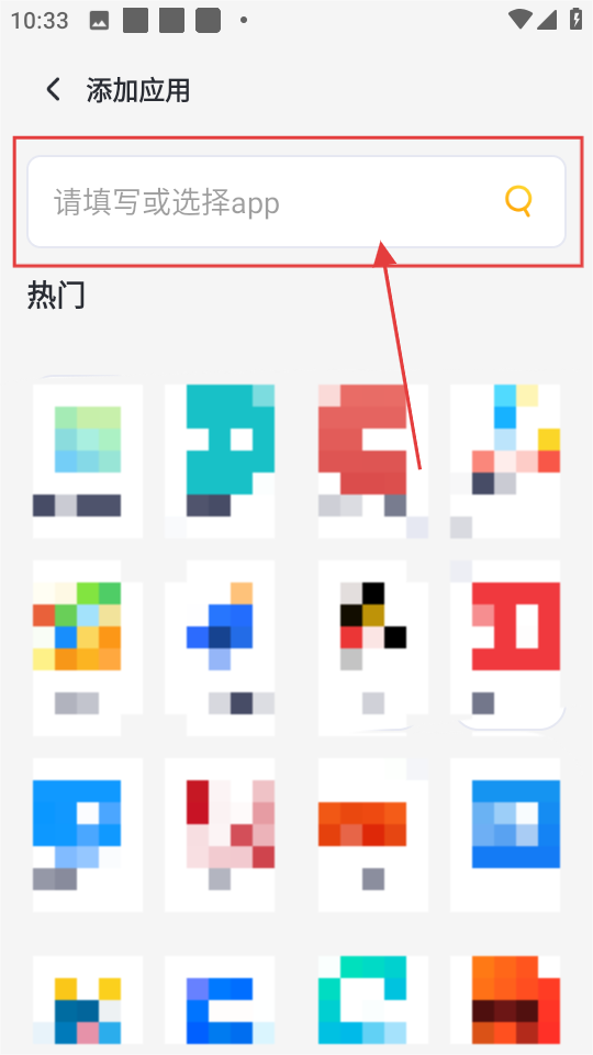 2、进入添加应用页面后,可通过搜索框填写或选择app,找到需要添加的应用哦。