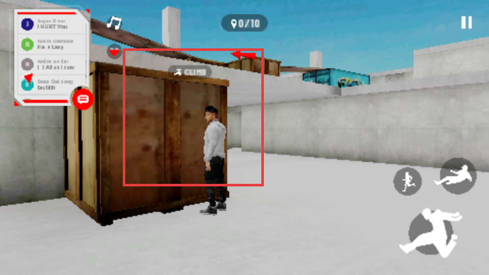 4、靠近可攀爬的物体时,触发【CLIMB】操作,攀爬至高处探索。