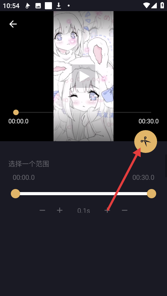 4、在视频切割界面点击剪刀图标进行视频切割操作。