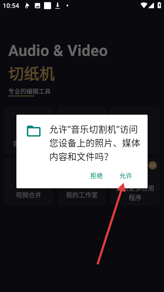 2、点击【允许】,授予“音乐切割机”访问设备上的照片、媒体内容和文件的权限。