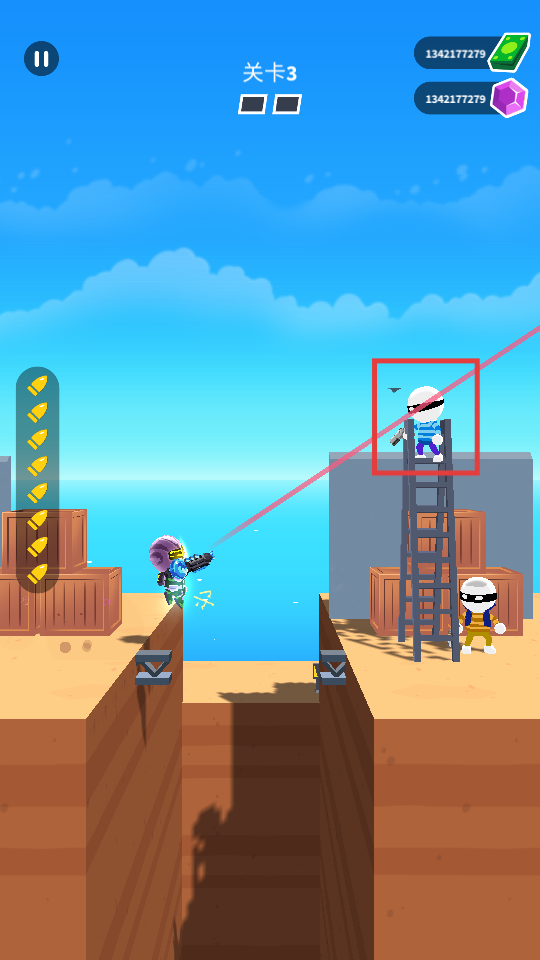 3、将高处敌人消灭后,在瞄准方框内剩余敌人将其消灭即可通关。