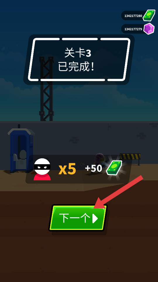 4、关卡完成后,获取金币奖励,点击【下一个】挑战后续关卡。