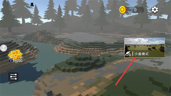 1、点击【沙盒模式】进入模式选择界面,可选择不同场景的沙盒游戏模式。