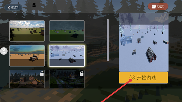 2、在模式选择界面选择想要游玩的场景后,点击【开始游戏】按钮,进入游戏场景。