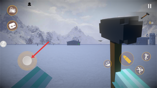 3、进入游戏场景,玩家需要通过左侧虚拟摇杆控制角色移动,探索沙盒场景。