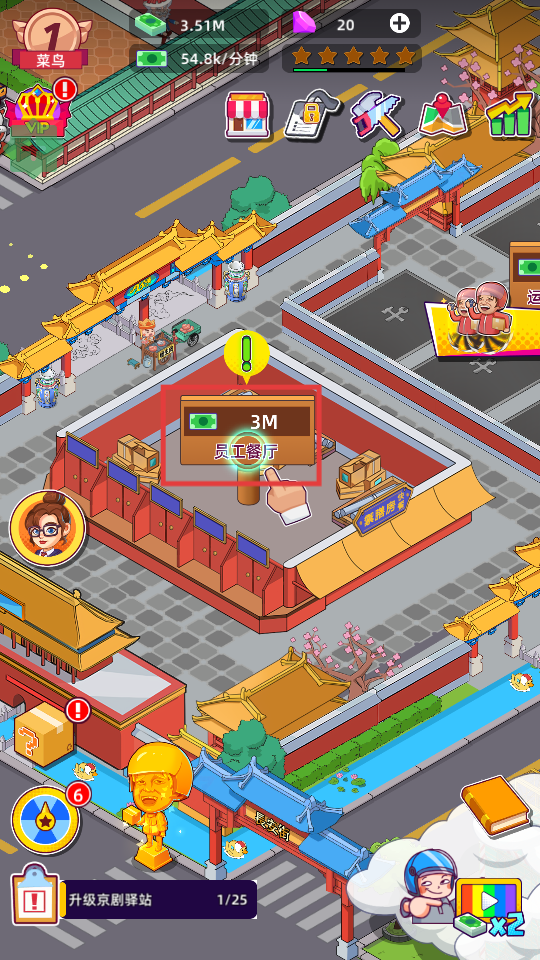 2、建造员工餐厅,花费资金,提升员工福利,为后续升级和运营做准备。
