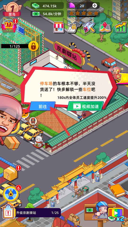 1、点击【前往】,解锁车位,提升员工速度,保障货物运输,推进业务发展。