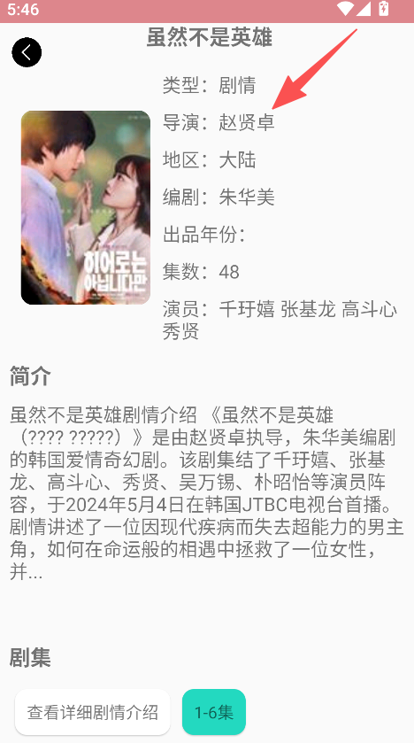 2、在韩剧详情页,可查看类型、导演、演员、剧情简介等信息,了解剧集情况。