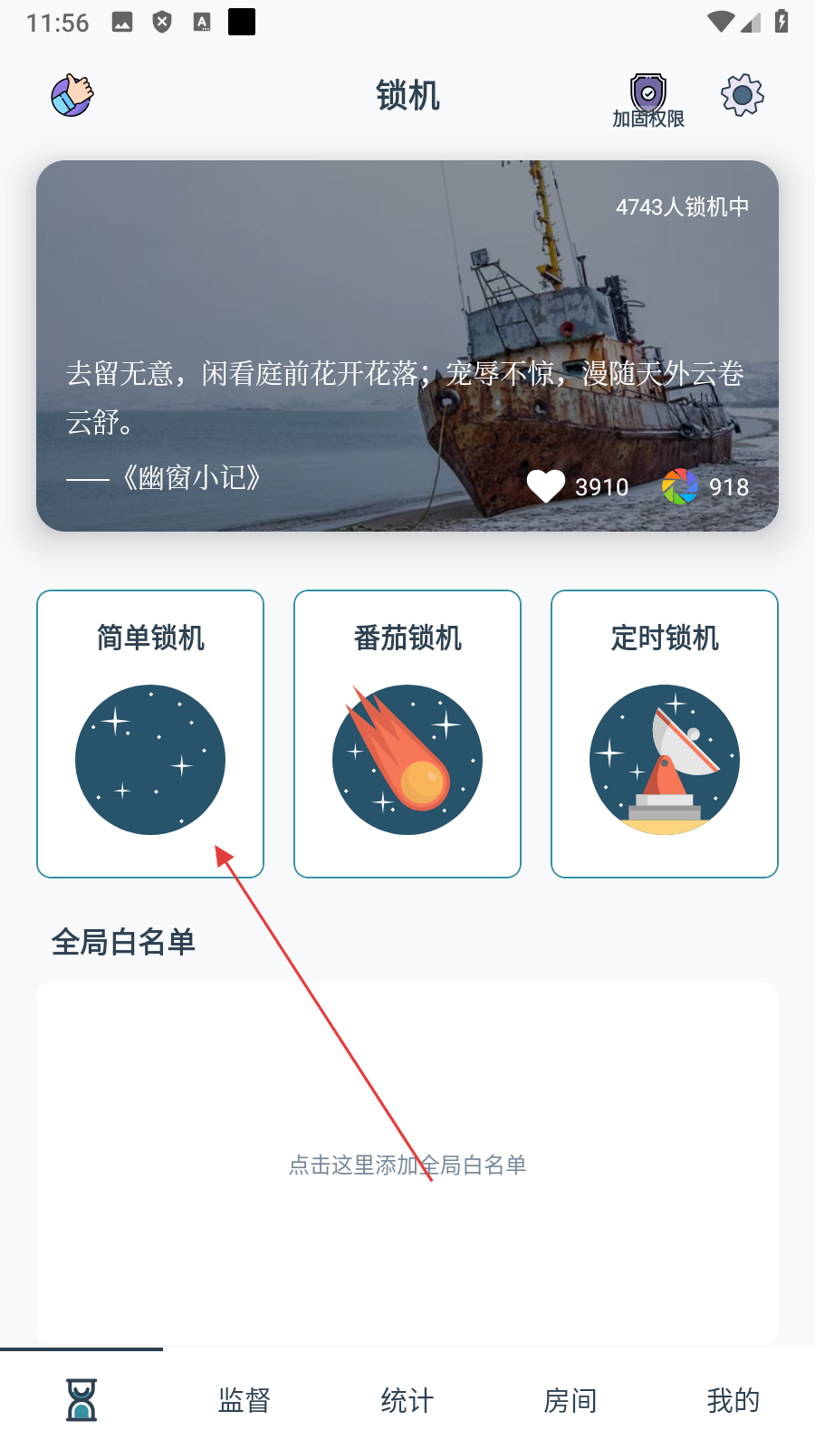 3、房间功能让志同道合的人在同一空间互相查看动态,包括锁机时间、应用打开记录等,设置密码保障隐私,适合同伴共同监督学习进度。