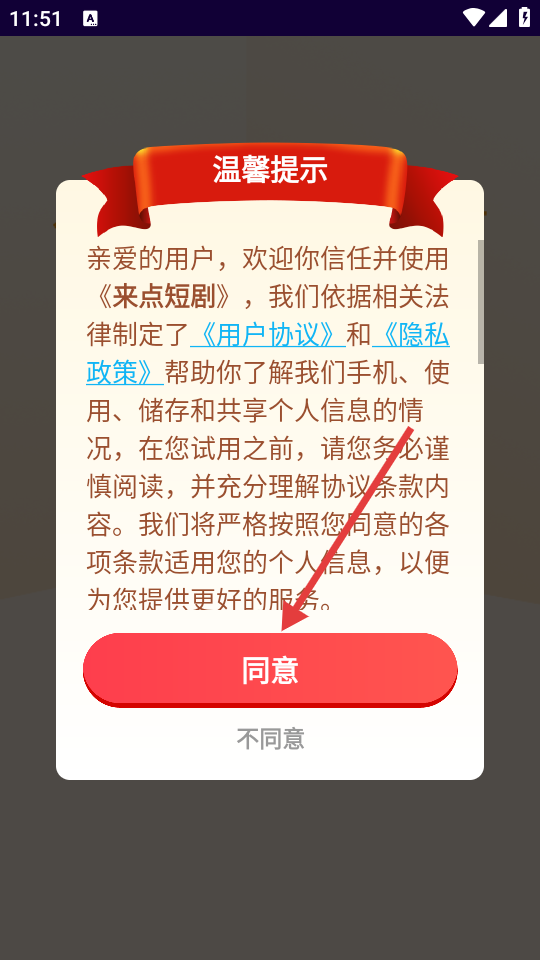 1、使用前需阅读并同意【用户协议】和【隐私政策】,点击【同意】按钮即可进入软件。