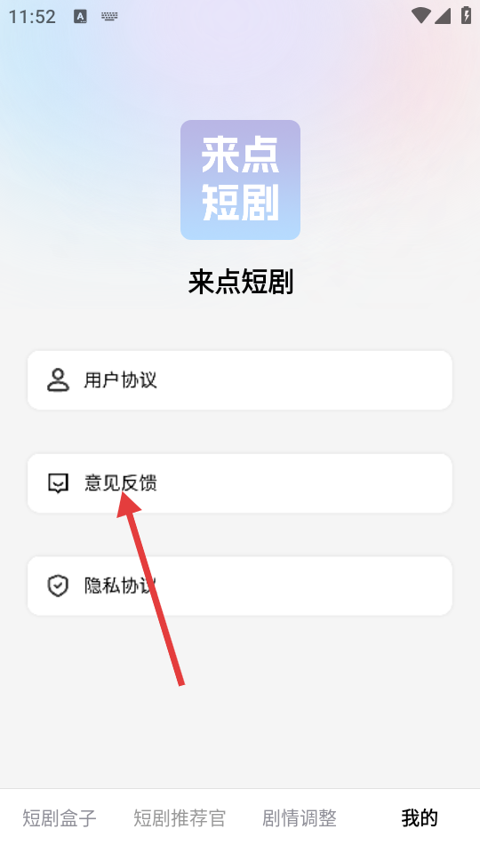 3、在“我的”页面中,找到【意见反馈】选项并点击,即可进入意见反馈界面。