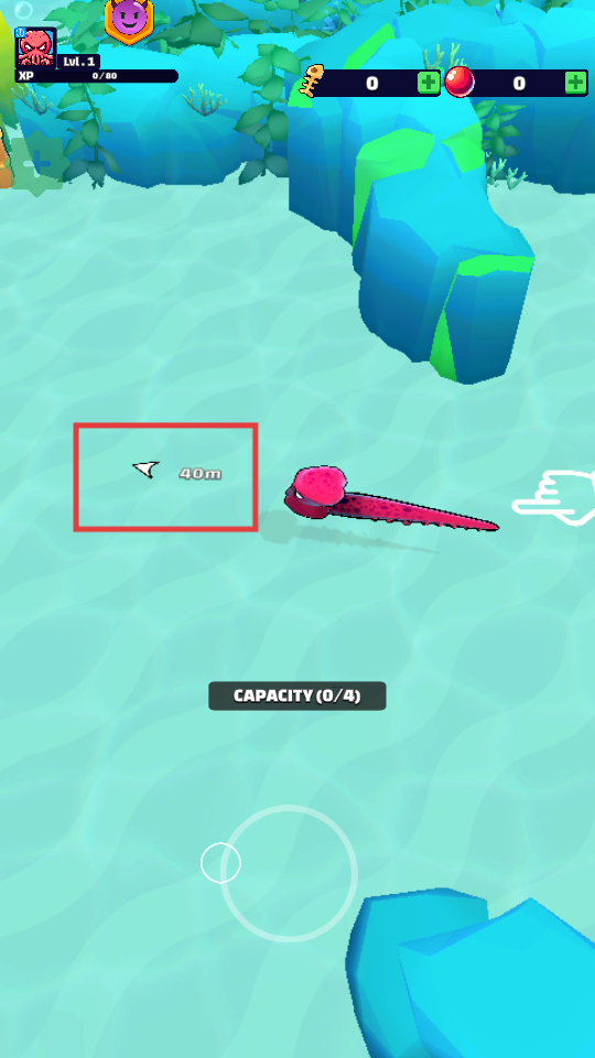 1、通过下方的虚拟摇杆控制章鱼移动,在海底探索。