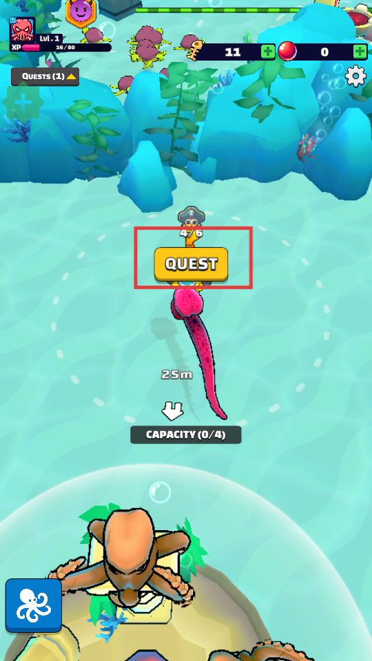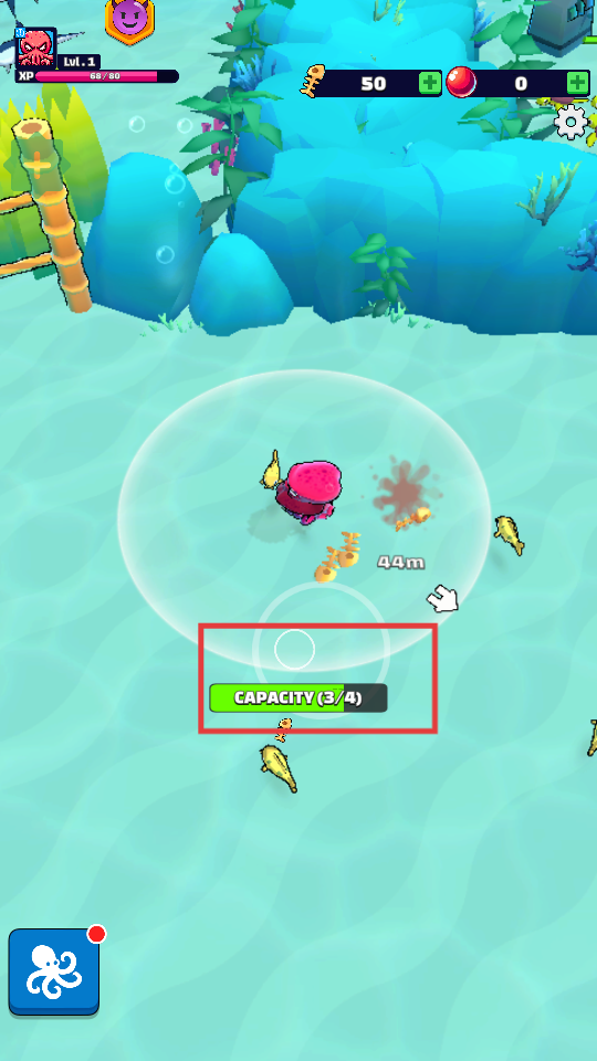 1、升级进化系统通过吞食鱼类积累资源,解锁新触手和能力,章鱼会从单臂形态逐步变形,增强成长成就感。