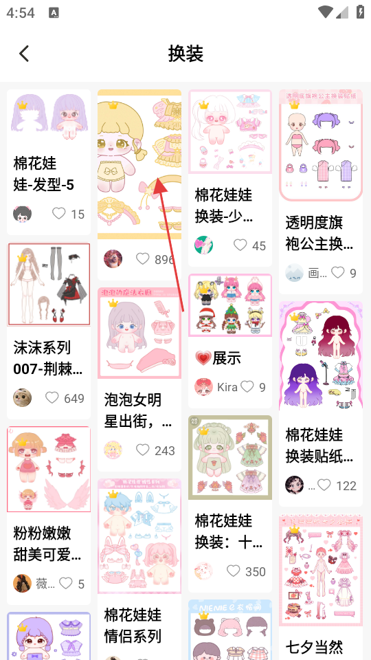 4、在换装专区,可浏览多种换装贴纸,如棉花娃娃、沫沫系列等,选择喜欢的贴纸即可使用。