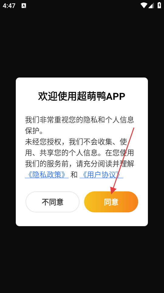 1、使用需阅读并同意【隐私政策】和【用户协议】,点击【同意】按钮进入软件。