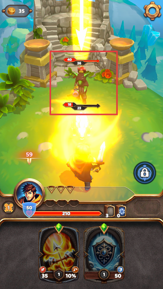 1、选择下方的卡牌,对敌人发起攻击,提升战斗伤害输出。