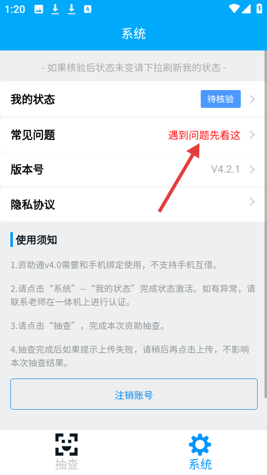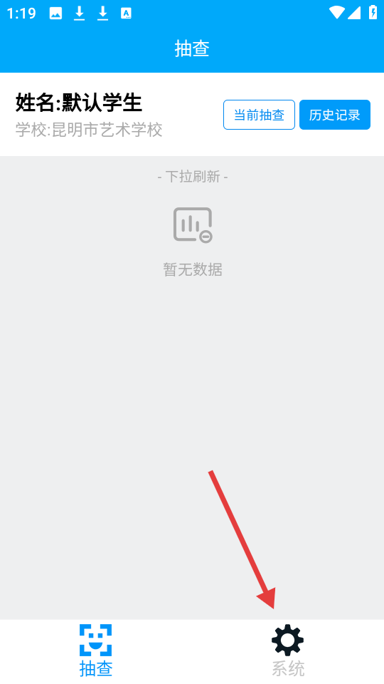 1、在抽查界面,点击底部【系统】按钮进入系统页面。
