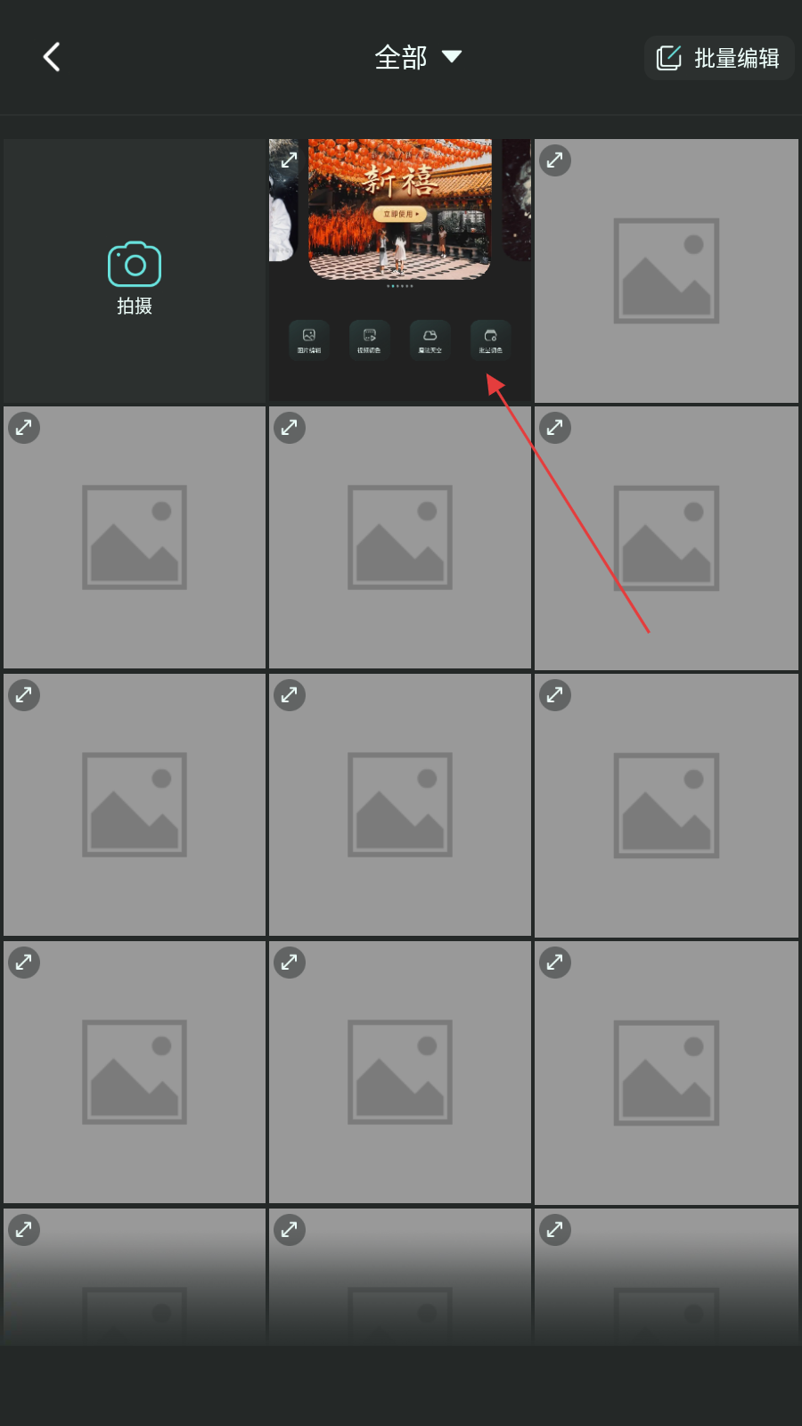 2、在图片选择页面【选择目标图片】,进入图片编辑页面。