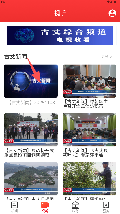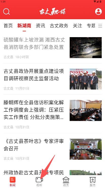 2、在视听页面的“古丈新闻”板块中,浏览新闻列表并选择目标日期节目。