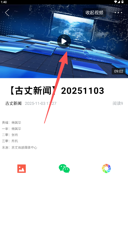 3、进入新闻播放页后,点击视频区域即可观看该期古丈新闻完整视频。
