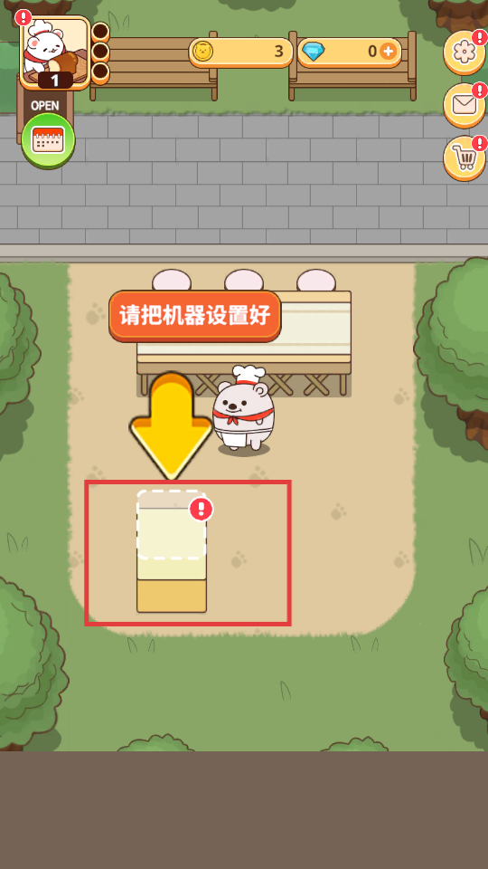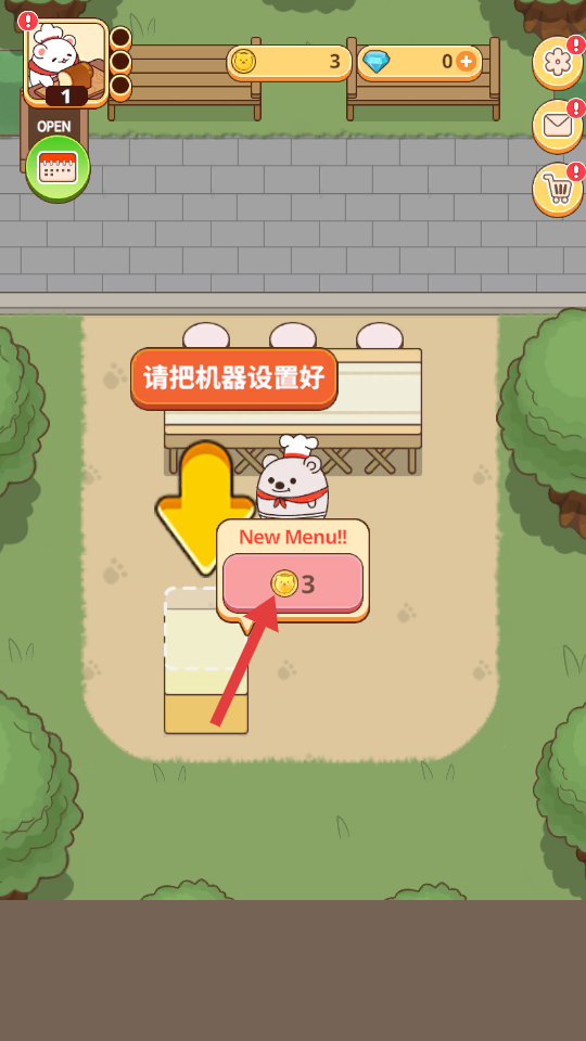 1、设置机器,开启经营之旅,为制作美食和吸引顾客做准备。