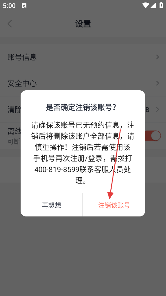 4、在确认框中,点击【注销该账号】按钮,可提交账号注销申请。