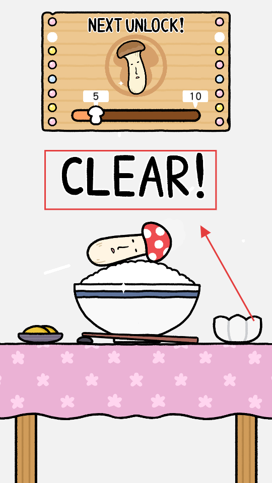 4、关卡通关显示【CLEAR】后,可积累进度解锁新蘑菇皮肤,继续挑战下一关,丰富冒险体验。
