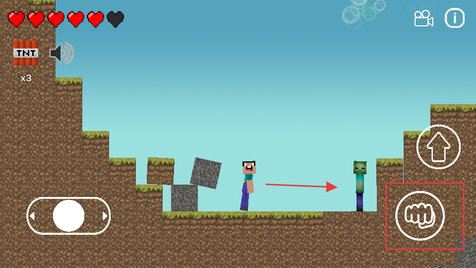 3、注意左上角的生命值和【TNT-x3】道具,战斗中若陷入困境,可考虑利用道具或借助场景元素规避伤害,维持生存。