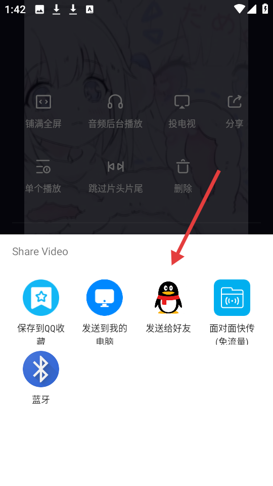 4、在分享界面点击【发送给好友】,可将视频分享给QQ好友。