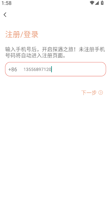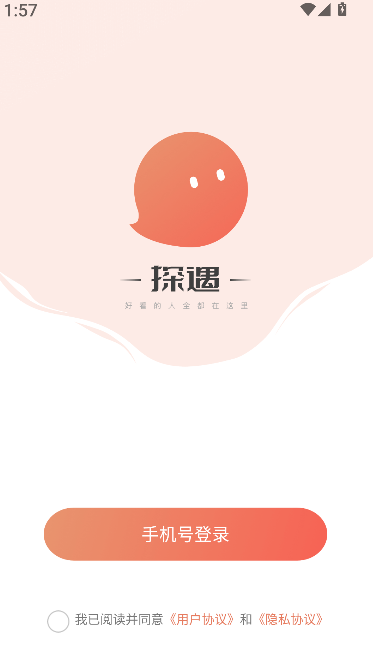 1、打开《探遇漂流瓶》,在首页登录界面中点击手机号登录选项,进入号码验证页面。