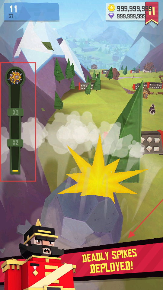 3、多撞毁人类尤其是红色小人,破坏庄园获取更多分值,分值满了左边能量槽爆发,石头变身无敌模式。