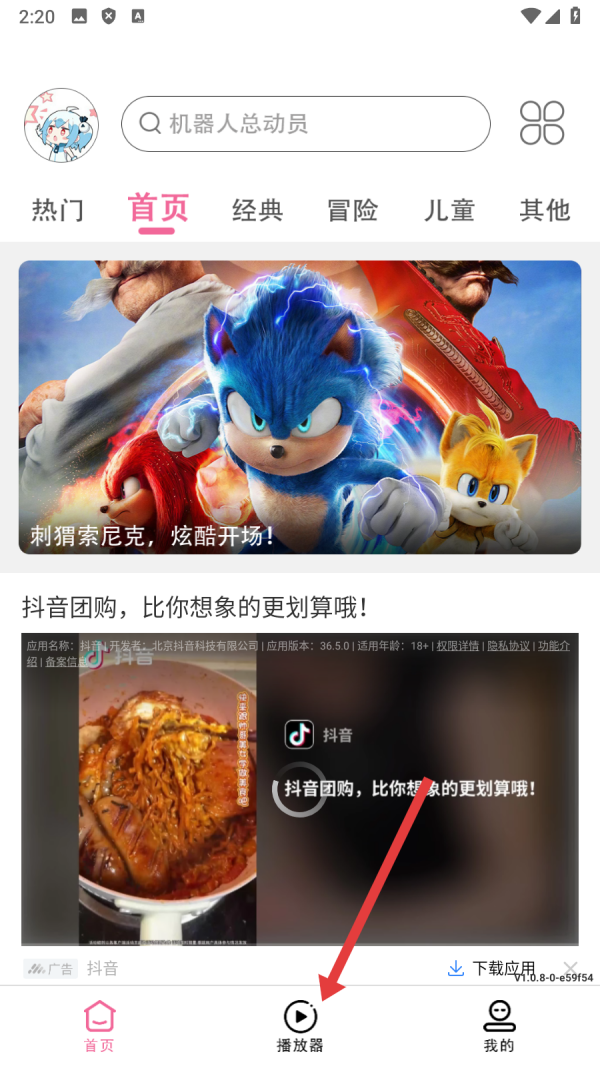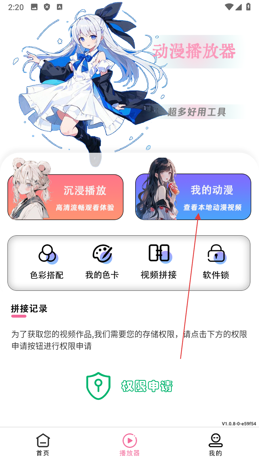 2、在功能页面,点击【我的动漫】,进入本地视频选择页面。