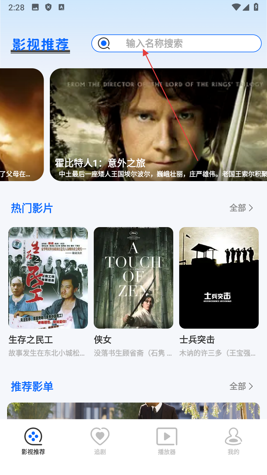 2、在搜索页面【输入影片名称】后点击【搜索】,获取搜索结果。