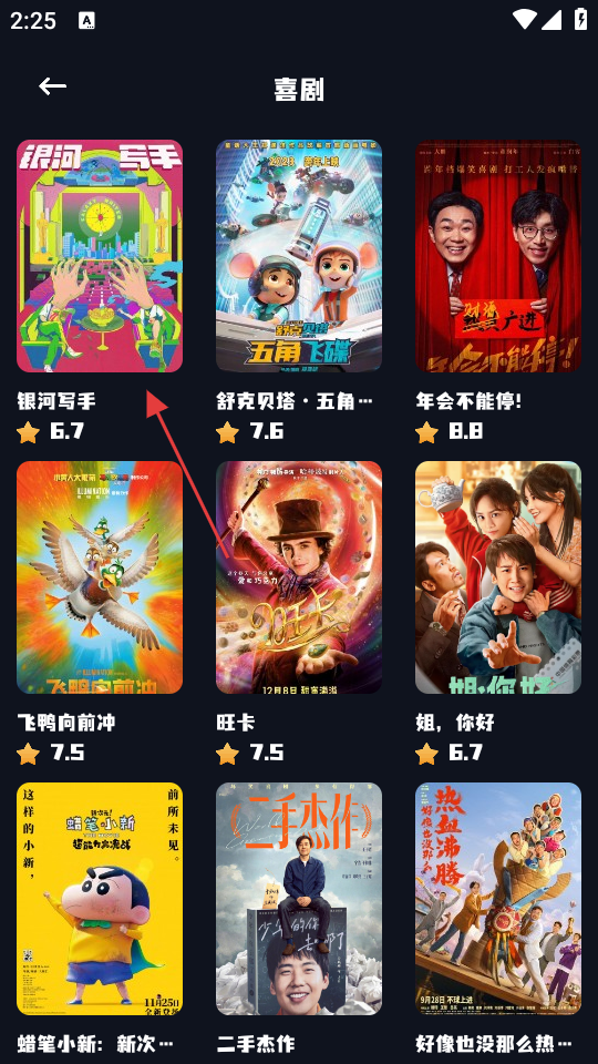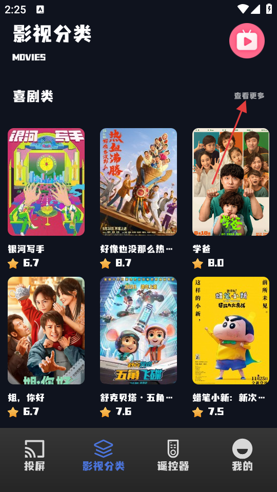 2、在影视分类界面,选择心仪的分类如“喜剧类”,点击【查看更多】可进入该分类的影视列表界面。