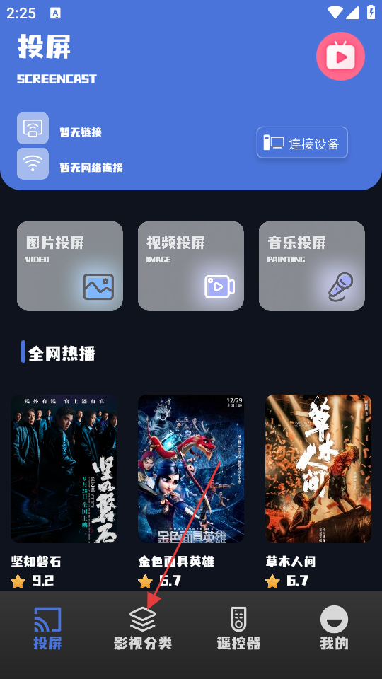 1、在首页,点击底部【影视分类】选项,可进入影视分类界面。