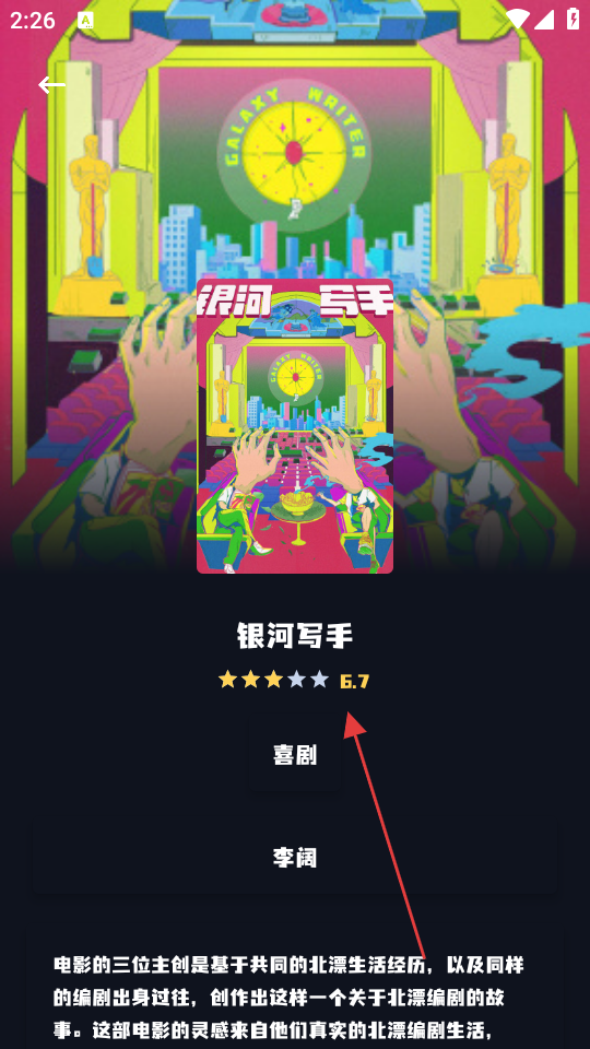3、在影视列表中,选择心仪的影视如《银河写手》,可进入该影视的详情界面。