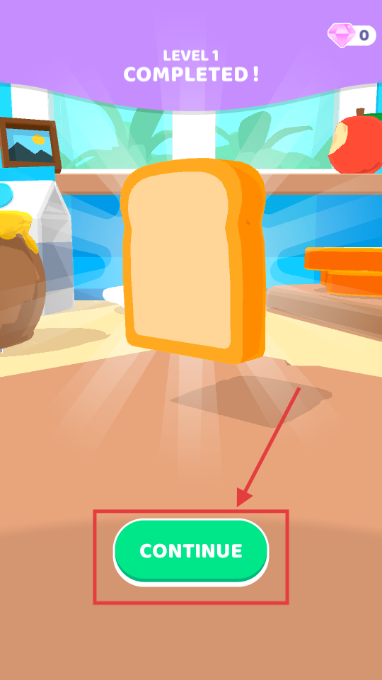 4、关卡完成点击【CONTINUE】进入下一关,保持操作精准,迎接新切割挑战。