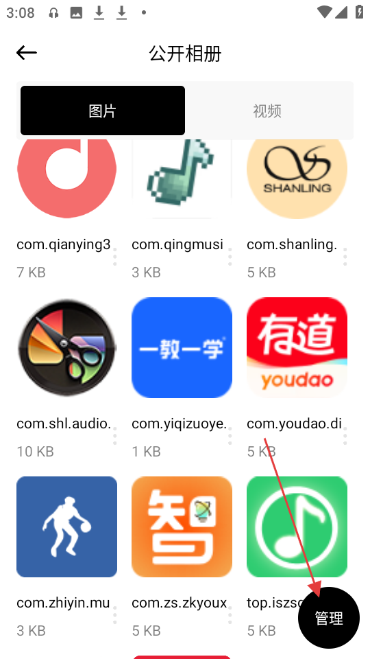 3、在公开相册界面点击右下角【管理】,可进入图片管理模式。